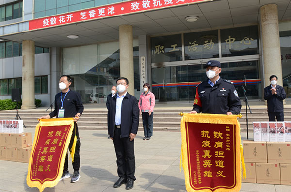 啟動儀式上,孫志杰、王洪書、馬良明等市領導向援助景芝抗疫的部門單位代表贈授錦旗。景芝白酒公司向廣大抗疫英雄捐贈了“致敬抗疫英雄”紀念品。