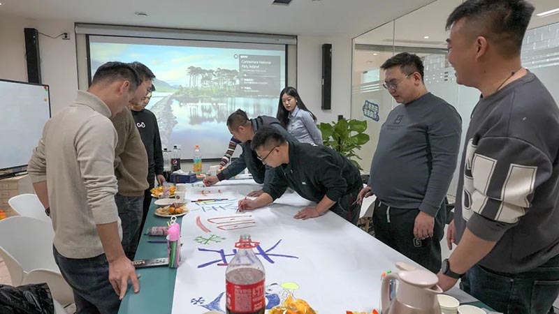 清晨走進(jìn)公司,映入眼簾的就是氛圍感滿滿的雪花日主題物料,胖乎乎的雪娃在門口迎接每位家人的到來,憨態(tài)可掬的模樣吸引不少人一起合影。簽到墻上留下了風(fēng)格各異的簽名,這一天不是上班是回家,各種點(diǎn)心水果早已準(zhǔn)備好,等候家人的品嘗。
